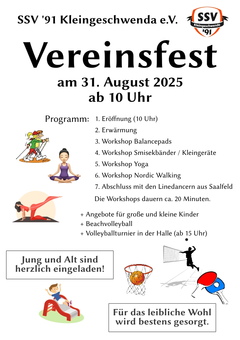 In diesem Jahr fand unser Vereinsfest am 31.August 2025 in der Turnhalle und auf dem Sportplatz statt. Das Wetter war für die sportlichen Angebote fantastisch und lockte den einen oder anderen in die Sportstätten.weiter lesen