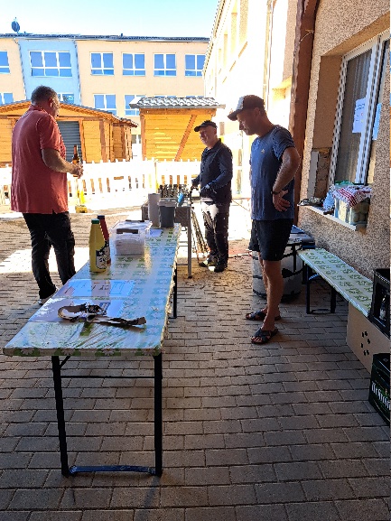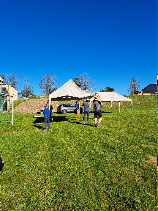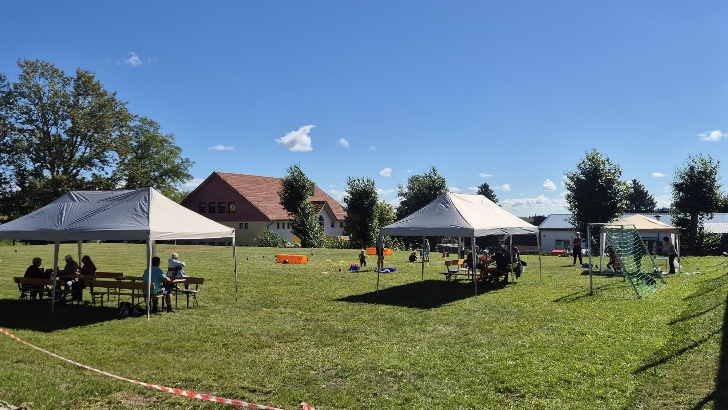 Am Sonntagmorgen trafen sich die Übungsleiter, um alles für ein tolles Fest vorzubereiten, seien es der Aufbau der Zelte, Sitzmöglichkeiten oder die Stationen für die Kinder.