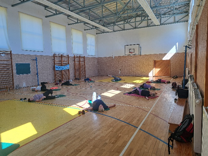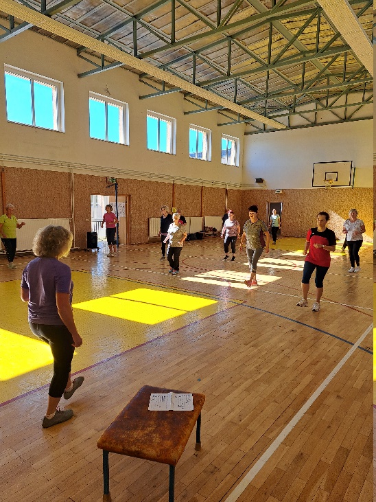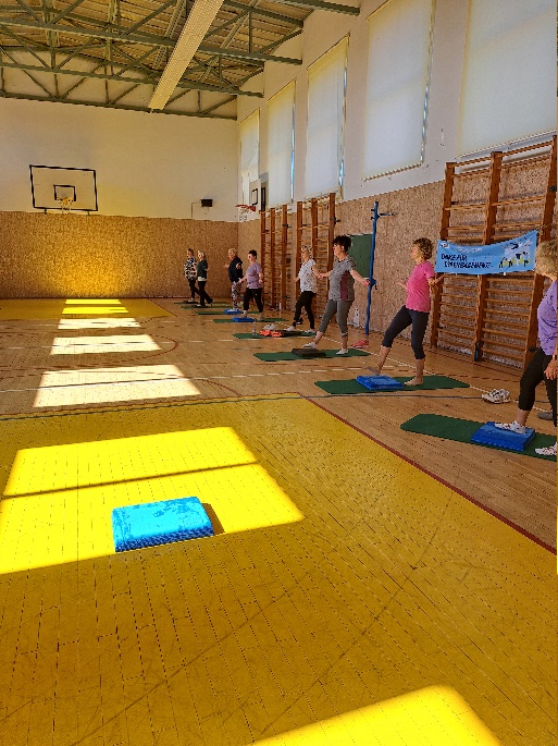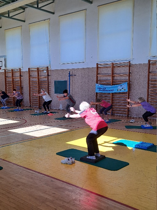 Margitta brachte die Teilnehmer mit einer Erwärmung in Stimmung und gab ihr Wissen und Können im Yoga und Nordic Walking an die Sportinteressierten weiter.